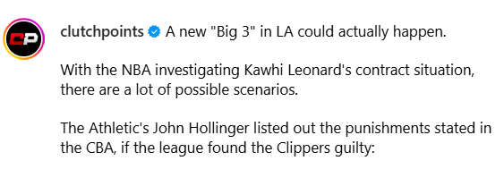 2025-09-26 09:20北京时间9月26日,知名美媒clutchpoints讨论了快船和莱昂纳德阴阳合同调查的潜在结局:湖人或许能捡漏打造一套新三巨头阵容。以下是clutchpoints的解析——