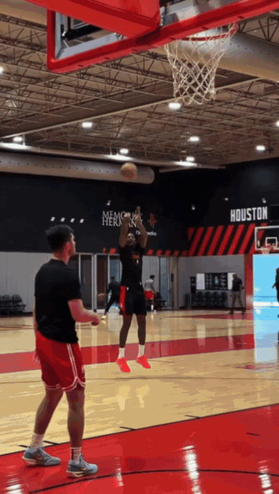 视频中,两人均上身带有火箭LOGO的训练服,练习着投篮,且保持着相当不错的命中率。值得一提的是,稍早前,火箭官方也晒出了杜兰特来到球馆和球队合练的视频。