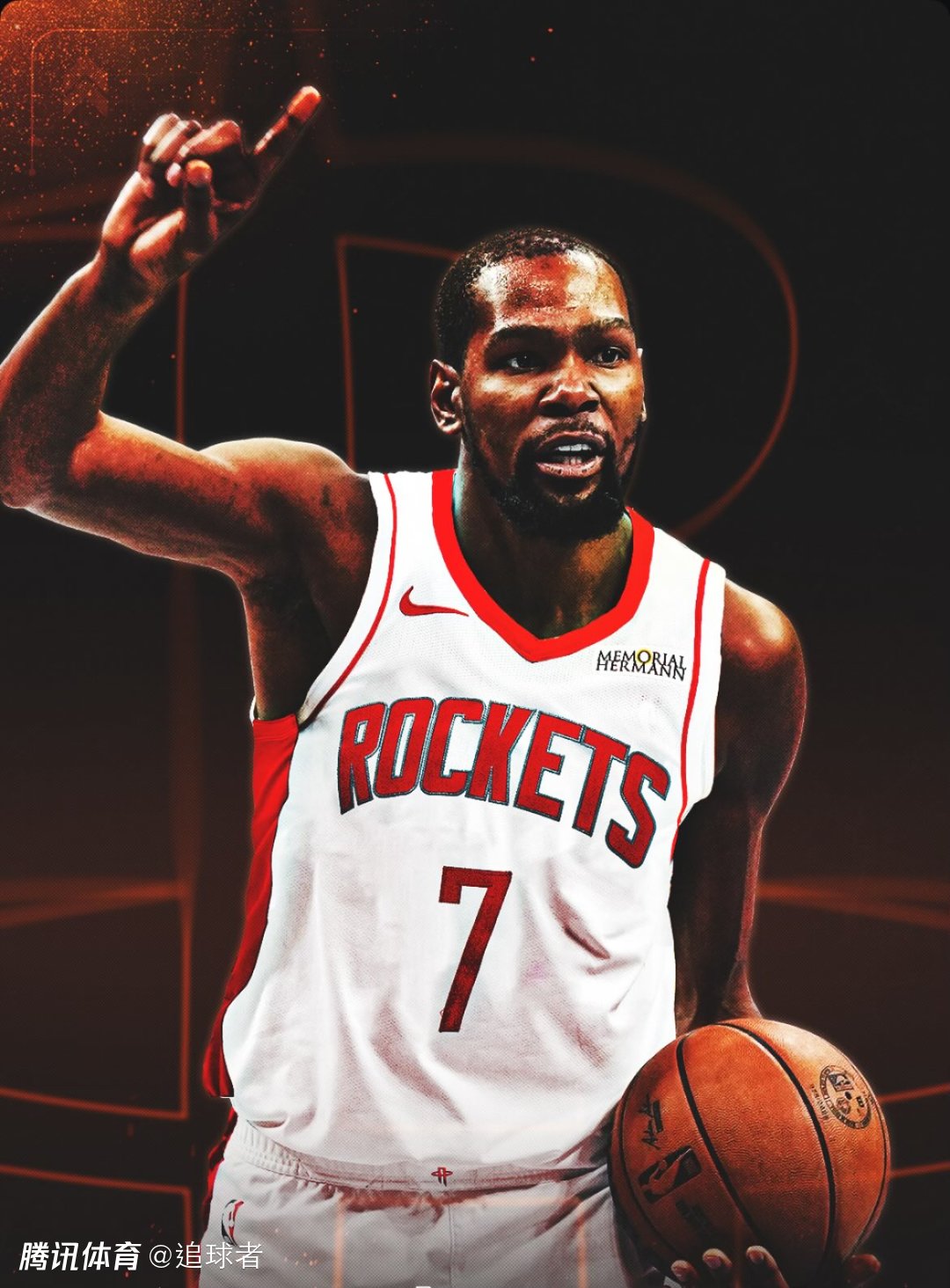 今年休赛期,杜兰特在一笔七方大交易中被太阳送到火箭,对此杜兰特很兴奋,新赛季他将身穿火箭7号球衣带队冲击总冠军。
