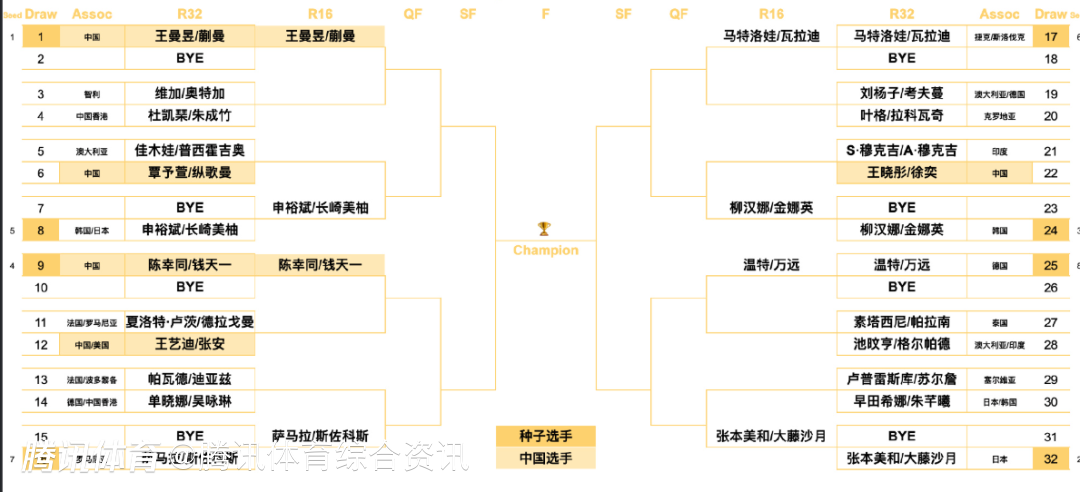 WTT中国大满贯女双签表:王曼昱/蒯曼首轮轮空 王艺迪跨国搭档张安出战