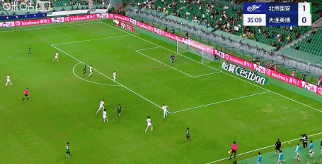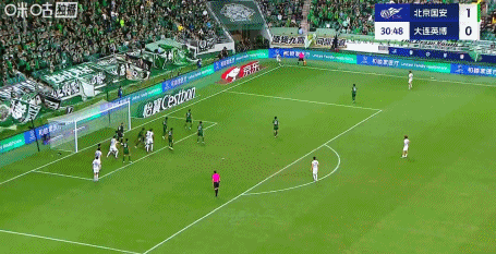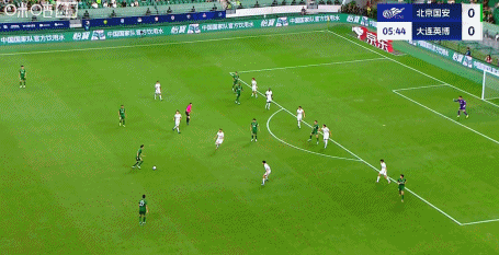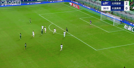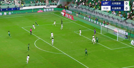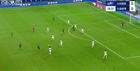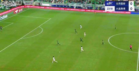 第23分钟,大连英博反击,朱鹏宇禁区内做球给佩尼亚,但佩尼亚的射门击中国安后卫偏出底线。
