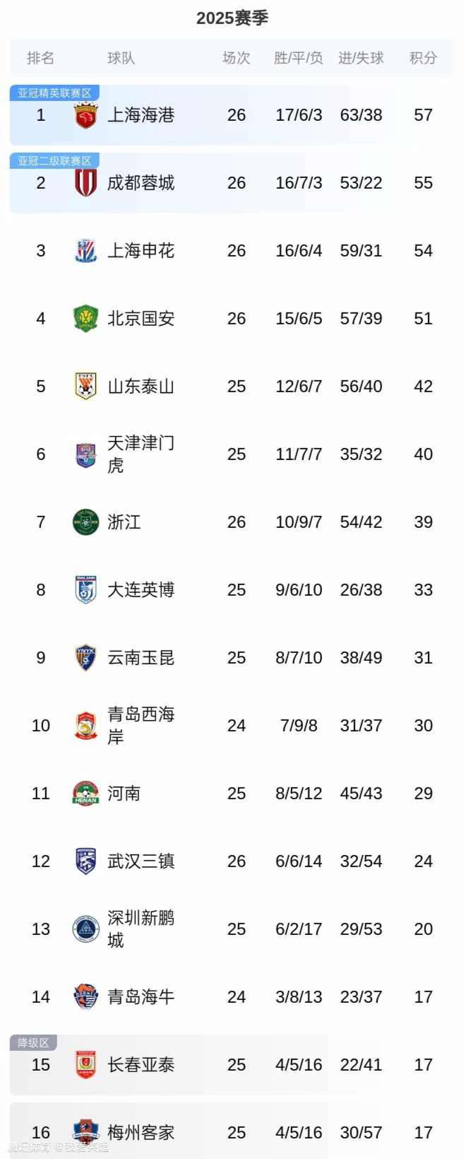 2025-09-26 22:20北京时间9月25日,中超第26轮先赛4场。争冠4队成都蓉城、上海海港、上海申花和北京国安先后出战。结果领头羊成都蓉城爆冷被逼平,其余3队均取胜。