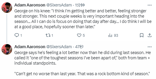 谈及自己的膝盖伤势时,乔治表示:“我感觉一天比一天好,身体也越来越强壮。接下来这几周对新赛季至关重要,我能做的就是日复一日专注于康复这件事。我相信自己最终会恢复到理想状态,希望这一天能尽早到来。”