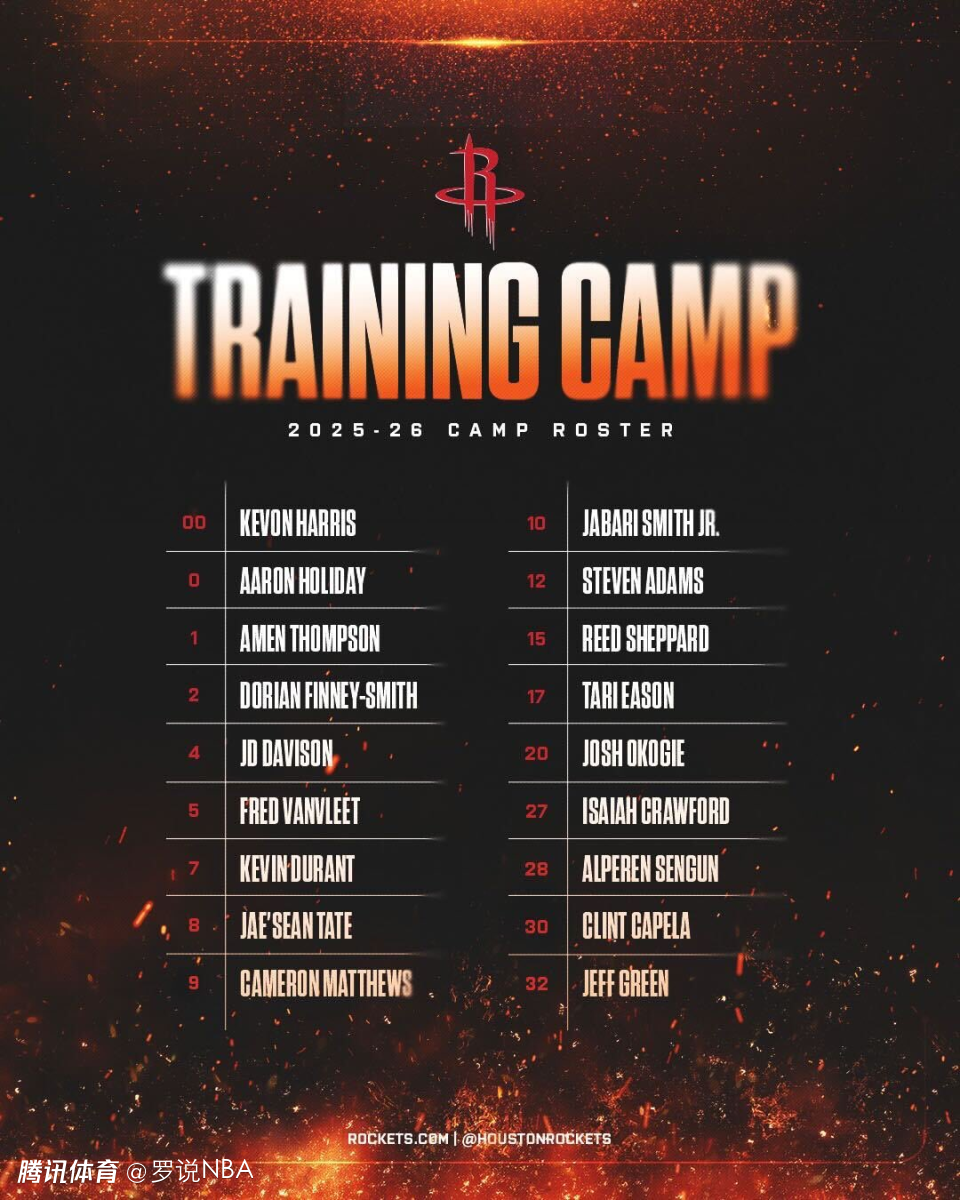 2025-09-27 07:50北京时间9月27日,休斯顿火箭今日公布了2025-26赛季的训练营名单,名单上共计18名球员。具体如下(按号码顺序)——