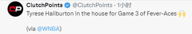哈利伯顿现身狂热队的主场,已经有很多次了,由于他和狂热队当家球星凯特琳-克拉克私交很好,两人经常会去看彼此的比赛,上赛季,克拉克也曾多次观看步行者队的季后赛和总决赛比赛。虽然克拉克此前已赛季报销,无缘参加季后赛,但哈利伯顿仍然到场支持了同城队伍。