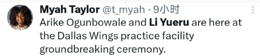 另外飞翼队记Myah Taylor也跟进报道,李月汝和奥贡鲍尔现身球队新训练馆破土仪式。