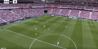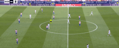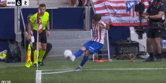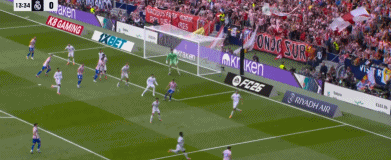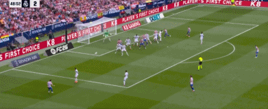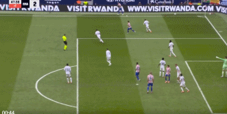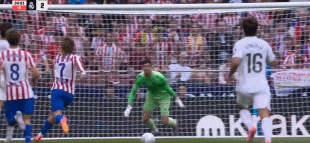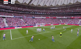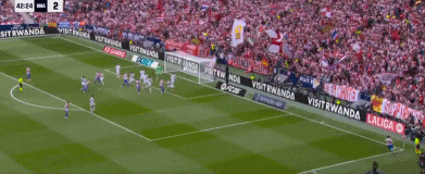 第94分钟,巴尔韦德传球失误,巴埃纳断球斜传,格列兹曼单刀球低射破门,5-2。