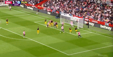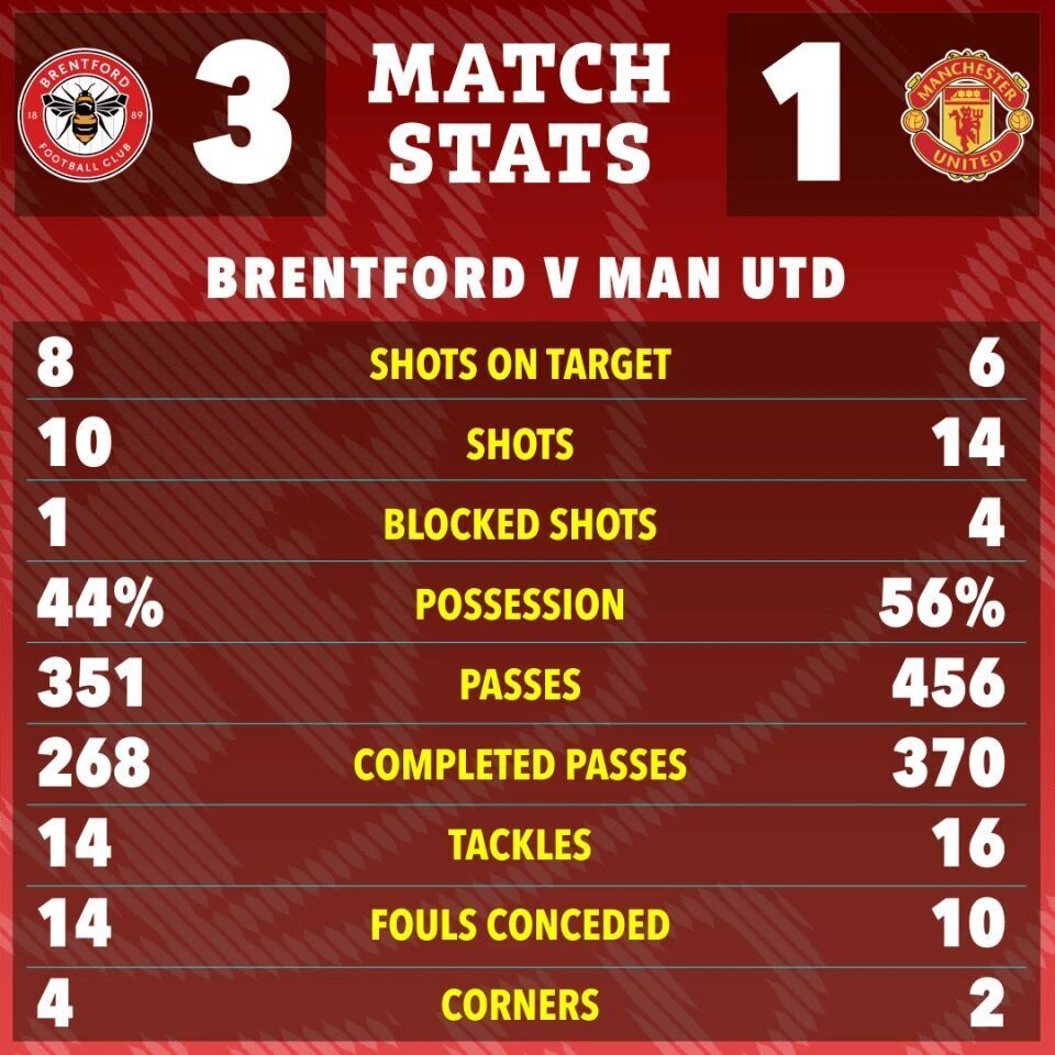 比赛补时阶段,布伦特福德通过反击锁定胜局。马蒂亚斯·延森接到亚尔莫柳克的传球后带到禁区前远射,巴因迪尔把守的球门再次被攻破,曼联1-3败走麦城。