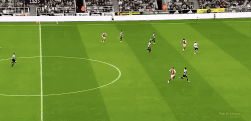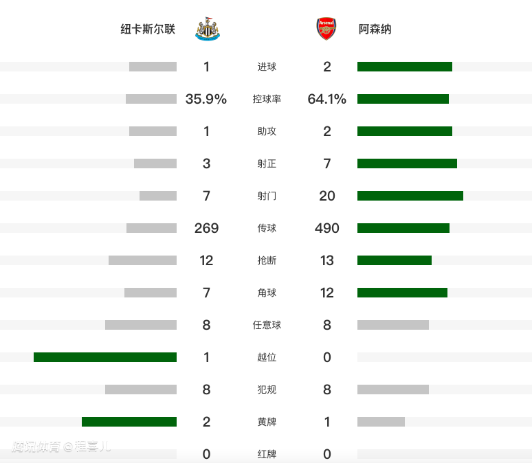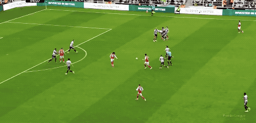 第34分钟,纽卡斯尔开出战术角球,托纳利不停球传中,沃尔特马德力压加布里埃尔,头槌破门。