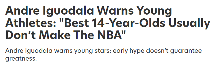 伊戈达拉说道:“做一名黑马其实是件好事,因为你必须真正为目标付出努力。我们总是在谈论全球最棒的14岁篮球少年,但大多数时候,这些孩子根本打不进NBA。”
