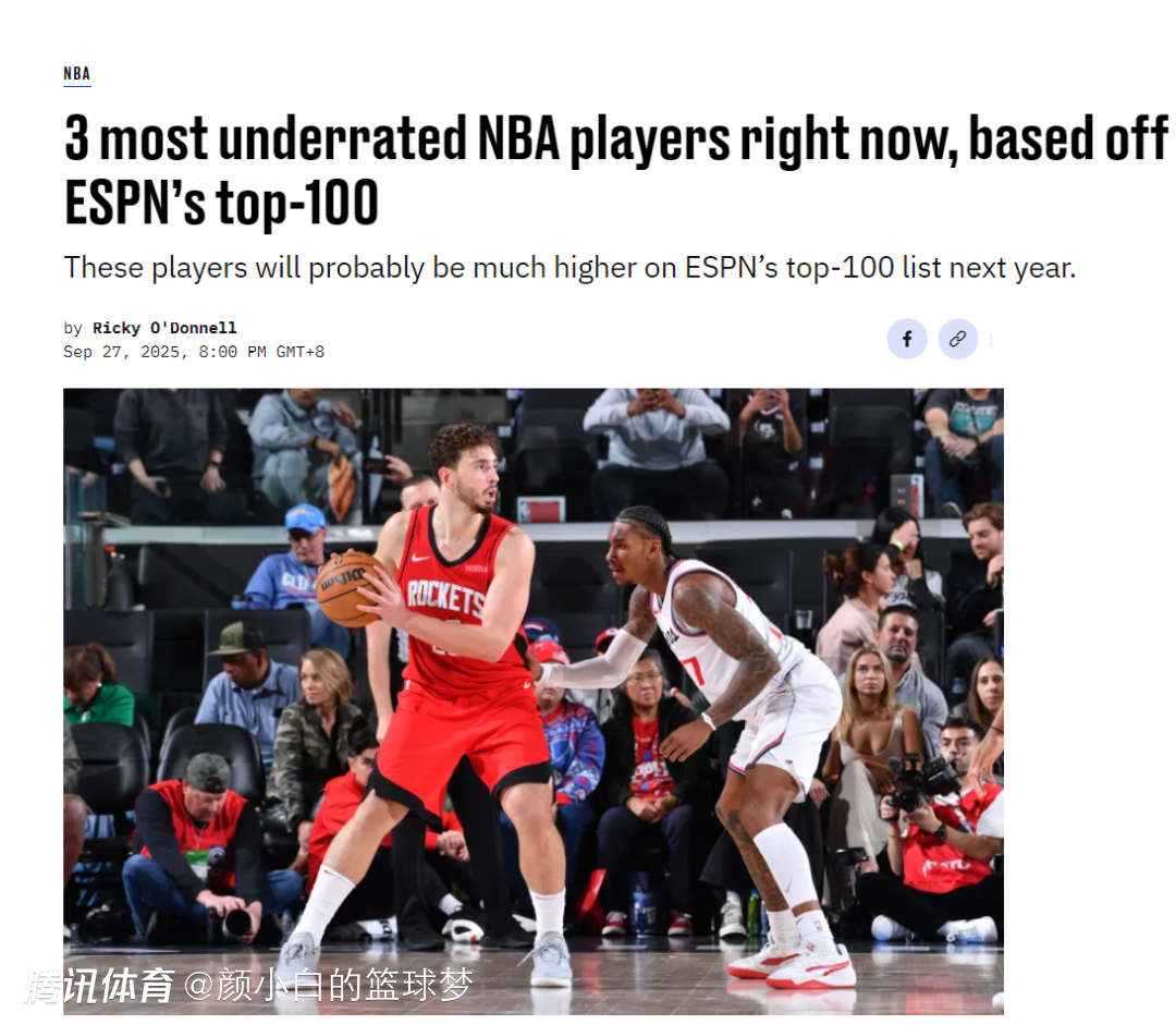 9月27日,美媒SB NATION发文认为ESPN的百大球星有三人被低估了,第一个就是申京,第二个是三球,第三个是锡安,这里我们只讨论申京。