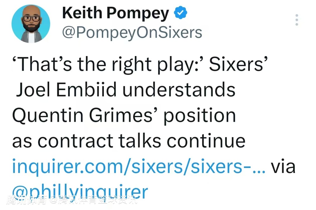 2025-09-29 18:50北京时间9月29日,76人球星恩比德在训练营当日训练结束后接受媒体采访,谈及格雷姆斯和球队的续约进展。