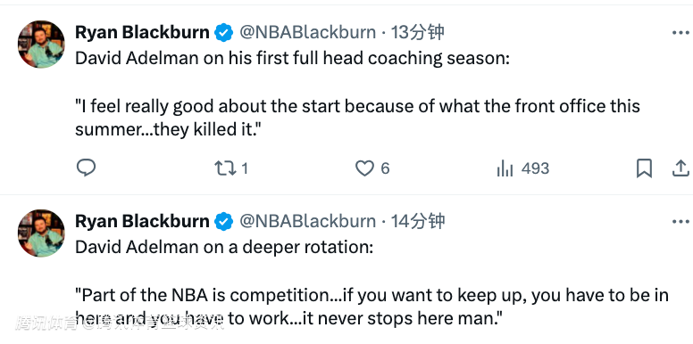 谈到球队更深厚的轮换阵容,小阿德尔曼说道:“NBA的一部分就是竞争,如果你想跟上节奏,就必须参与其中并付出努力,这里的竞争永不停歇,伙计。”