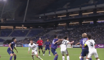 比赛的第19分钟,广岛三箭开出左侧角球,吾米提江防守时漏人,荒木隼人头球冲顶破门。