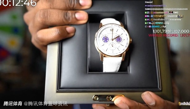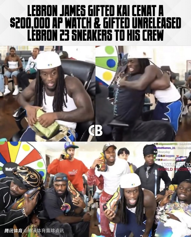 在直播间中,詹姆斯赠送了凯-塞纳特一块湖人配色的爱彼手表(世界三大顶级奢侈腕表品牌之一),据悉,这块手表价值20万美元。此外,詹姆斯还为凯-塞纳特和他的朋友们准备了尚未发布的23代签名球鞋。