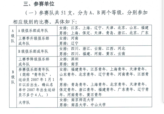 2025-2026赛季中国排球超级联赛各级参赛球队汇总
