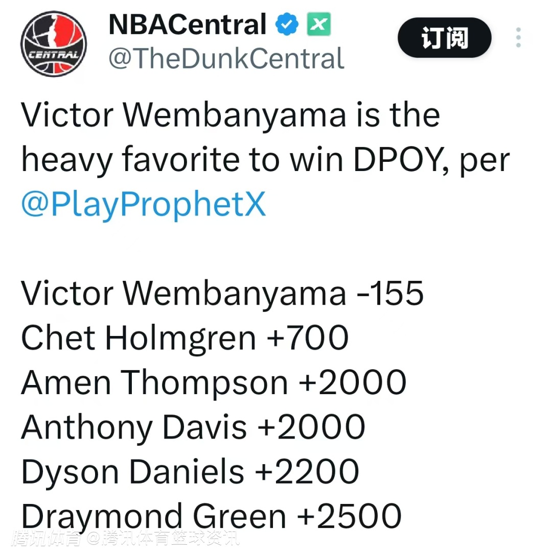 年度最佳防守球员赔率更新:文班亚马领跑优势巨大 阿门浓眉并列第三