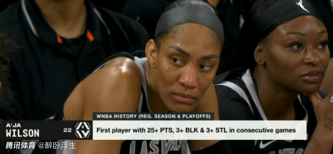 阿贾-威尔逊成为WNBA历史首位连场轰下至少25分3抢断3盖帽的球员(常规赛+季后赛)。