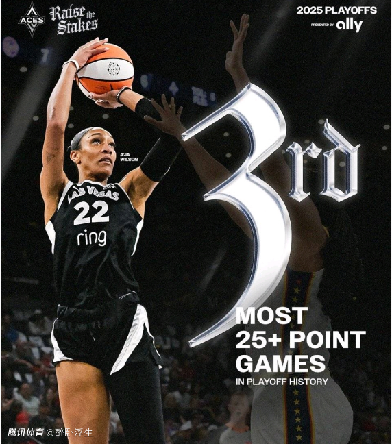 阿贾-威尔逊季后赛25+场次升至WNBA历史第三位。
