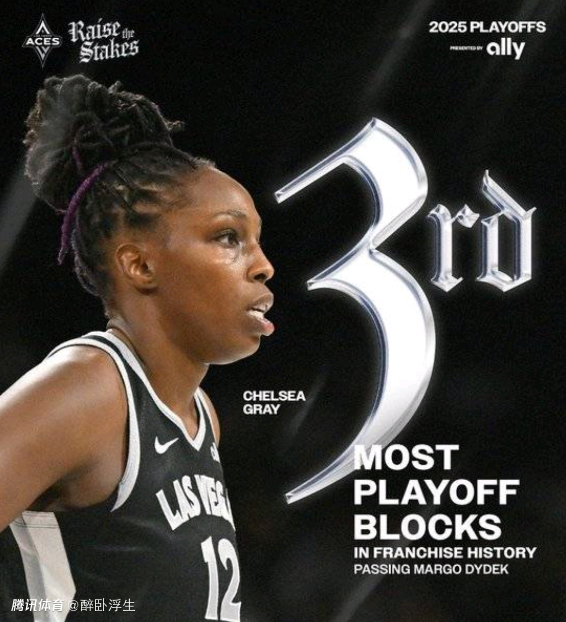 格雷季后赛盖帽数升至王牌队史季后赛第三位。