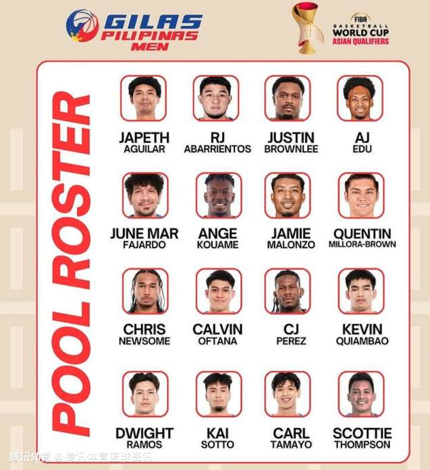 这份名单当中,可以看到球队的归化球员仍然继续使用布朗利,另外AJ-埃杜、拉莫斯等跟随球队出战了亚洲杯的主力球员也将继续为菲律宾男篮出战接下来的世界杯亚洲区预选赛。