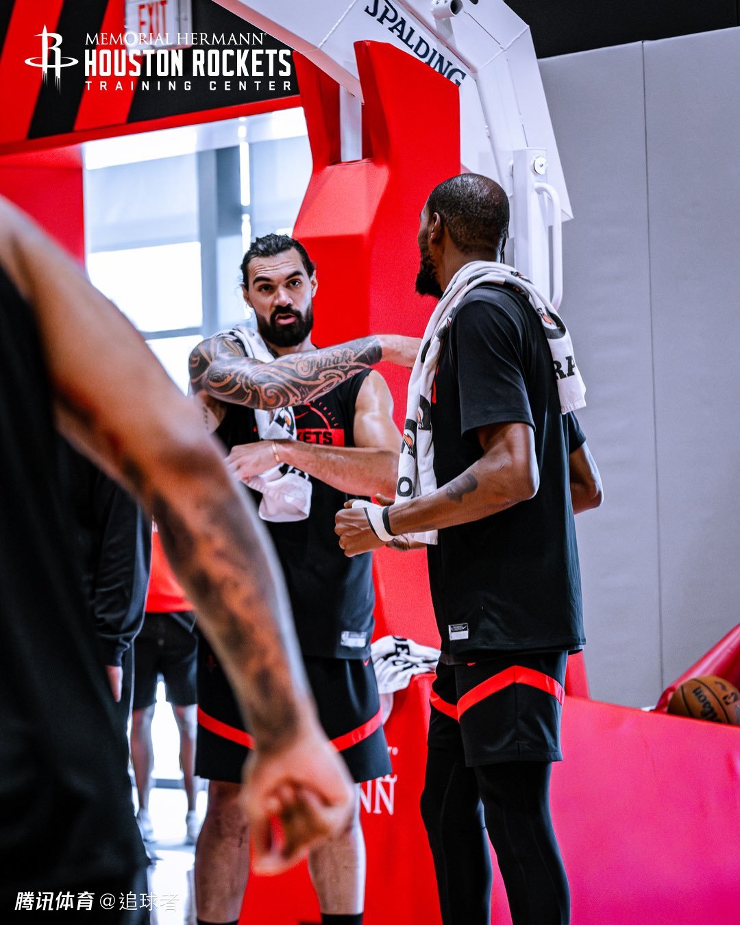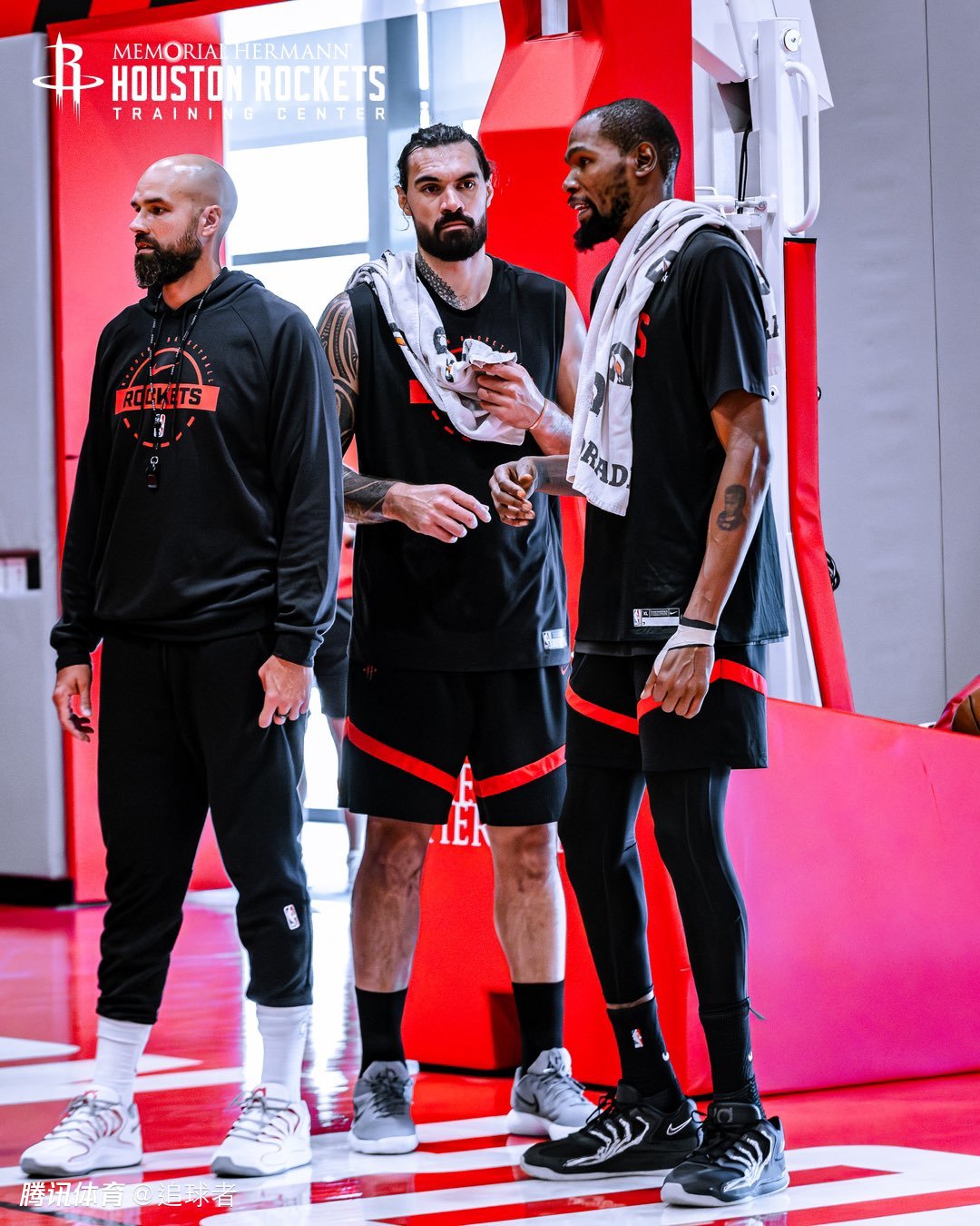 训练期间,“死神”杜兰特和“海王”亚当斯站在底线附近进行了一番交流;火箭众将正在积极备战,不过火箭也遭遇伤病困扰,范弗利特已经接受了前十字韧带修复手术,可能缺席新赛季的全部比赛,火箭新援芬尼-史密斯也在养伤。