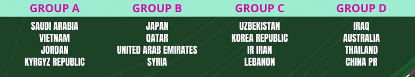 A组:沙特(东道主)、越南、约旦、吉尔吉斯斯坦