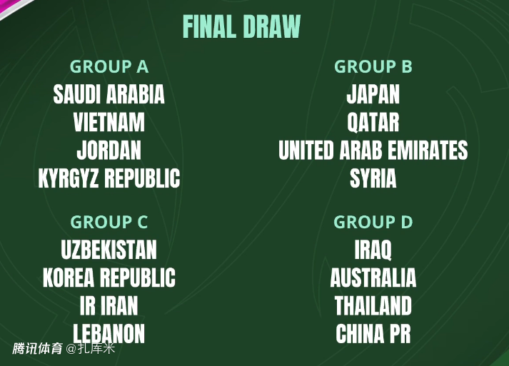 附:U23亚洲杯分组