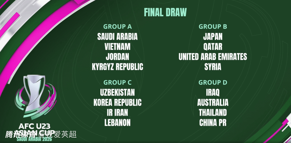 2026年U23亚洲杯将于明年1月6日-24日于沙特进行。按照亚足联公布的计划赛程,中国队首战D1伊拉克,第二场对阵D2澳大利亚,第三场对阵D3泰国。