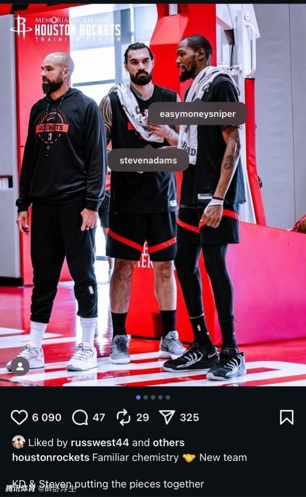 至于威少曾经短暂效力过火箭一个赛季,当时与昔日雷霆队友哈登搭档,但遗憾止步西部半决赛。威少在雷霆时期曾经与杜兰特、亚当斯搭档过,如今威少通过社媒点赞了火箭官推发布的这张照片,自然是耐人寻味。