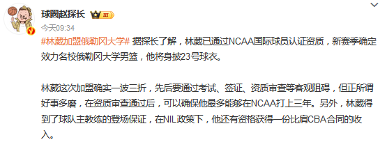 林葳今年和同曦的A类合同到期,他选择走出舒适区提升自我,先是参加NBA选秀可惜遗憾落选,后又参加NBA发展联盟选秀,被德克萨斯传奇队选中但薪水太低。林葳如今终于通过NCAA资质审查,将代表俄勒冈大学出战25-26赛季NCAA一级联盟的比赛。