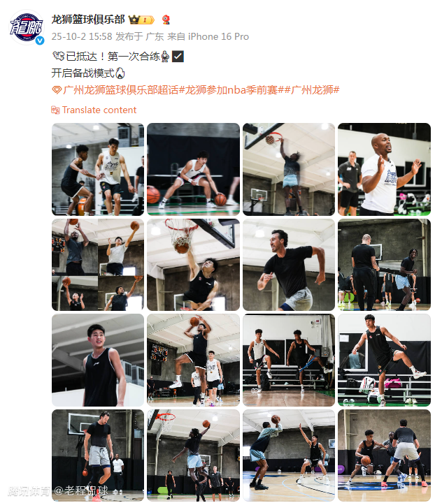 “已抵达!第一次合练,开启备战模式。”广州男篮官方社媒写道。