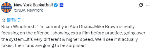 风格大变!尼克斯新帅布朗专注于进攻端调整 球队节奏快到会令球迷惊喜