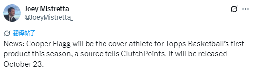 2025-10-02 23:10北京时间10月2日,据独行侠队记Joey Mistretta报道,一位消息人士向美媒ClutchPoints透露,独行侠状元弗拉格将成为球星卡公司Topps的篮球系列新赛季首款产品的封面运动员。该产品预计于10月23日发布。