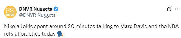 掘金举行内部训练赛 约基奇输球后找裁判交流20分钟