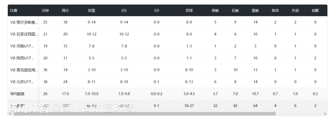 杨瀚森替身冒尖!场均17+10.7板 17岁身高已2.12米还能投三分