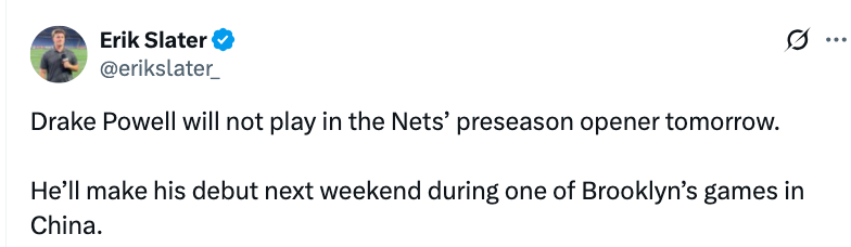 2025-10-04 01:20北京时间10月4日,据篮网队记Erik Slater报道,德里克-鲍威尔将不会出战篮网明天和耶路撒冷夏普尔的季前赛揭幕战,他将会在下周末篮网与太阳的中国赛中完成首秀。