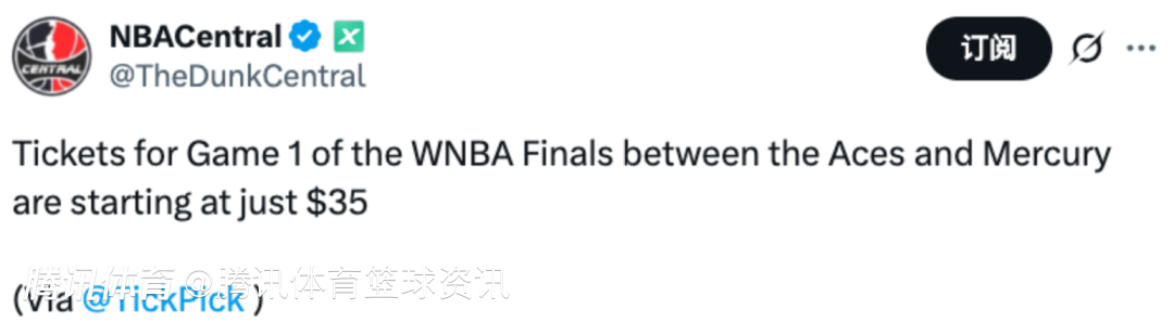 票价太亲民!王牌与水星WNBA总决赛G1最低价仅为35美元