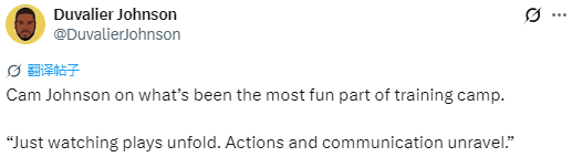 卡梅隆-约翰逊:看到战术逐渐落地和攻防配合顺畅是训练营最有趣环节