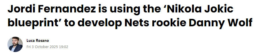 篮网主帅费尔南德斯谈到了自己过往与约基奇的合作经历,以及他将如何用同样的思路培养沃尔夫:“我认为面对这类非传统型球员,必须用创新的方式。我很幸运曾与约基奇共事,当时我们做的就是让他充分展示自己的能力。”