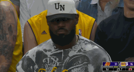 2025-10-04 11:30北京时间10月4日,湖人NBA季前赛首战对阵太阳,半场结束,湖人44-57落后太阳。本场比赛,缺战的詹姆斯也来到现场观战。首节快结束时,镜头给到了他,詹姆斯打起了哈欠。