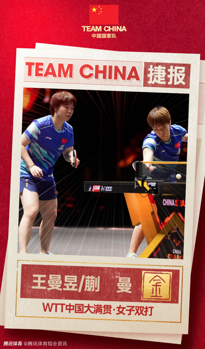 成功登顶!王曼昱/蒯曼3-1击败早田希娜/朱芊曦 拿到女双冠军
