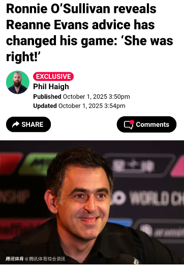 奥沙利文:埃文斯点拨助帮我重拾状态 本赛季将大幅精简赛程可能放弃大师赛