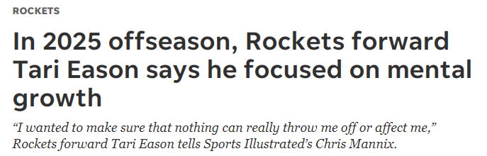 伊森表示,休赛期的训练重点之一是提升比赛专注力,而实现这一目标的关键方式,是努力效仿前队友狄龙-布鲁克斯。“我希望确保没有任何事情能干扰我、影响我的状态。我觉得狄龙之所以能比其他人更有优势,有一点是大家可能没注意到的,他非常善于用脑子打球。他会反复观看比赛录像,研究对手的技术特点和习惯,通过大量分析篮球比赛来为自己的发挥提供帮助。论运动能力,我可能比狄龙稍强一些,移动更灵活,也更擅长换防。所以如果能在我的比赛风格里,融入他那种出色的比赛心智,我相信自己不仅能达到他的水准,还能更进一步。”