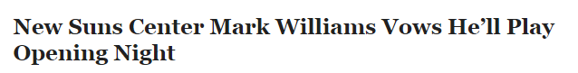 2025-10-05 21:00北京时间10月5日,太阳队在今年夏天交易得到了伤病频发的年轻中锋马克-威廉姆斯。据队记Duane Rankin报道,太阳队在训练营期间对他采取谨慎态度,但马威表示自己会出战常规赛揭幕战。