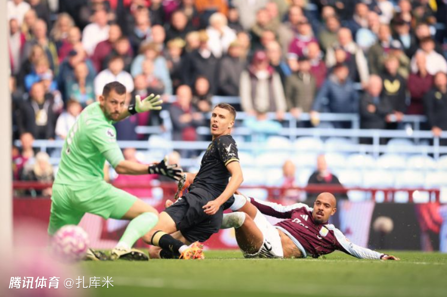 第54分钟,维拉快速反击,前场3人组之间联动,但罗杰斯插上近距离的抽射,直接踢到了杜布拉夫卡的身上。