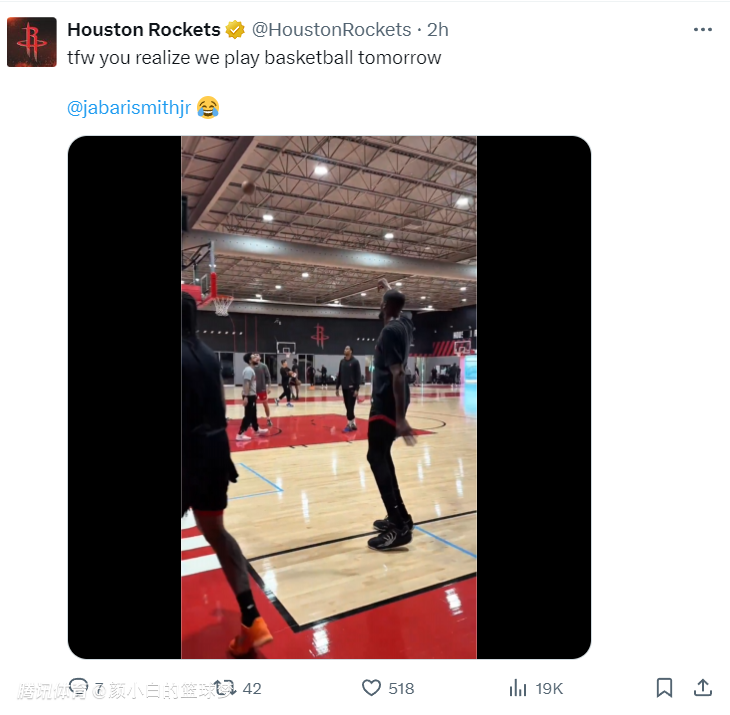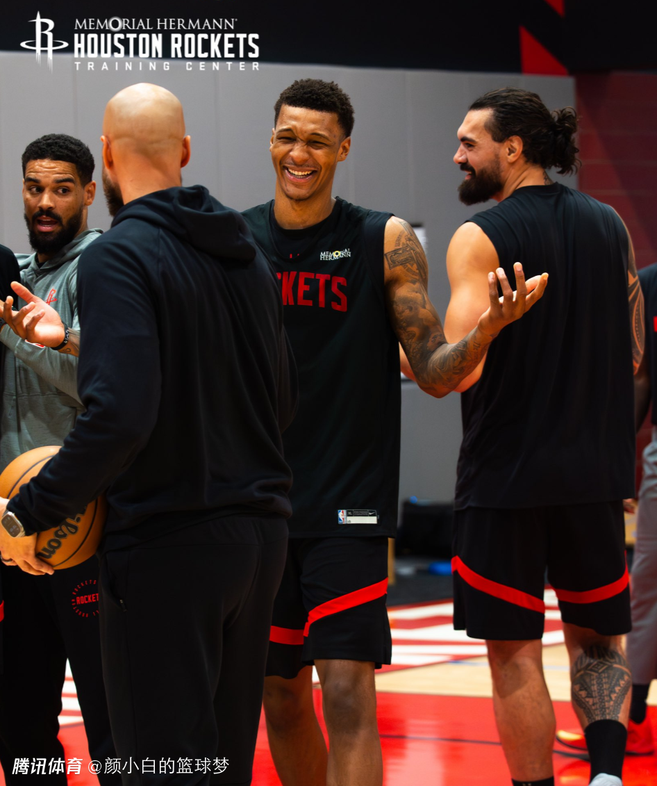 季前赛的最后一天火箭队的训练气氛就十分的欢乐了,本-沙利文跟、亚当斯、小贾巴里-史密斯相谈甚欢,据悉小贾已经锁定了一个先发的席位(申京、阿门、KD、小贾),最后一个先发的席位还没有确定。