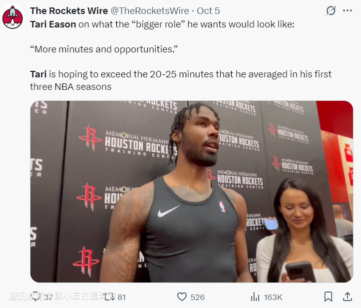 一天之前,伊森在训练后接受了采访,他表示自己希望在25-26赛季扮演更大的角色,此前三个赛季场均只有20-25分钟,希望新赛季场均登场时间可以超过25分钟。
