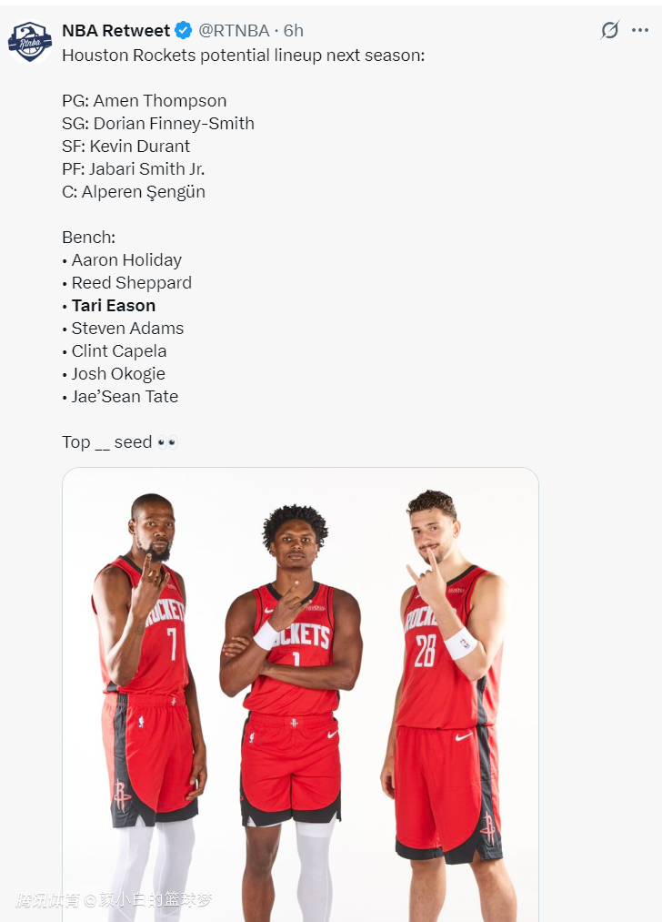 火箭用KD三分4中4预热季前赛:芬尼确定缺席 伊森正谈续约盼提升角色