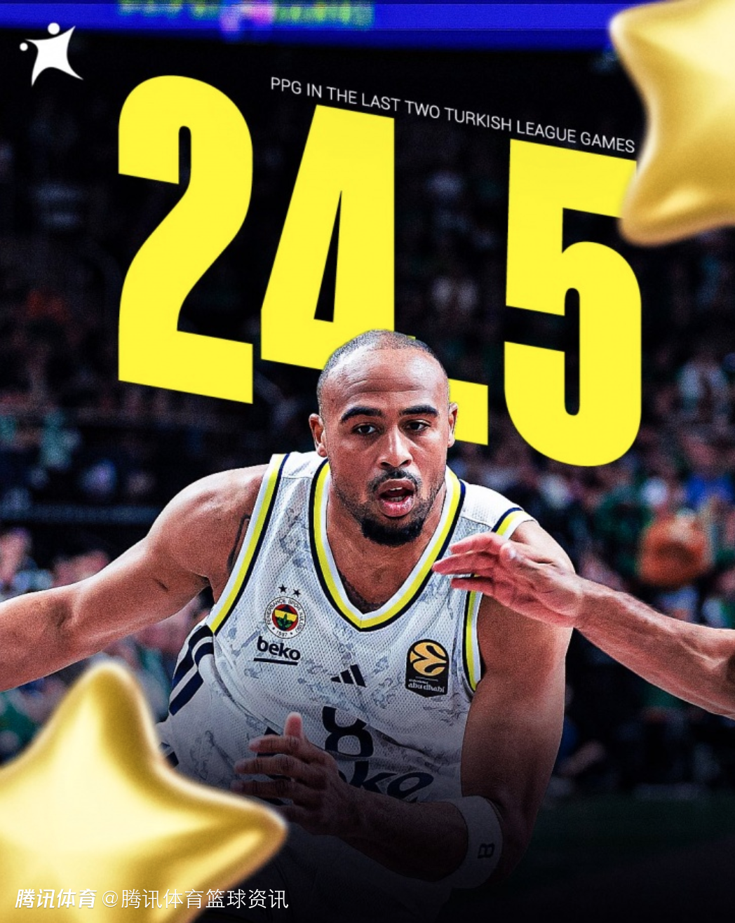 南橘北枳!小塔克加盟费内巴切场均24.5分 位列土超得分榜第三